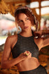 The new active top is made from lightweight, highly elastic fabric. The body-hugging piece has a round neckline, extended armholes, inner lining and an exclusive MELT print.