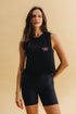 Long tank top with writing on the front.