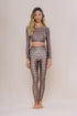 Leggings with a wide, high waistband with a looser fit and thin elastic at the waist. Made from soft shine fabric with an exclusive print.
